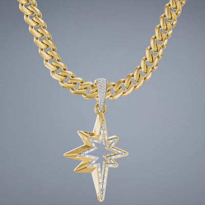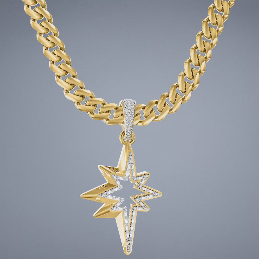A sleek, abstract eight-pointed star charm defined by clean gold outlines and Swarovski zirconia set on top. Designed to fit Monaco Chain™ necklaces or bracelets up to 8 mm wide, this celestial gold star charm adds a modern, radiant accent to layered chains and personalized jewelry looks.