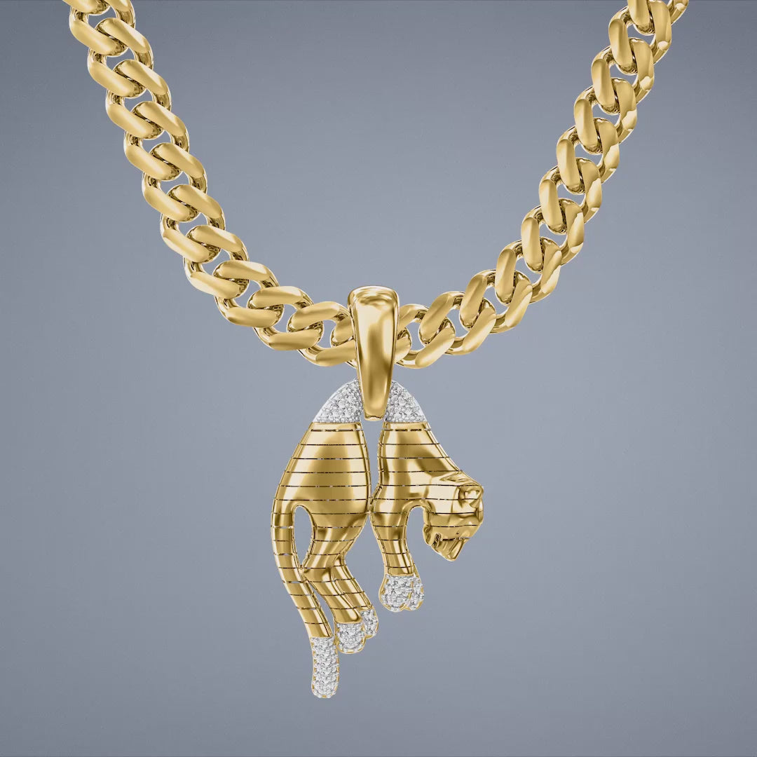 An art-forward panther body charm designed to dangle elegantly from your Monaco Chain™ necklace or bracelet. The curved back, paws, and tip of the tail shimmer with Swarovski® stones, while the sleek gold torso adds a sculptural, luxe statement to your chain stack.
