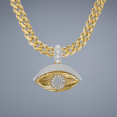 A modern interpretation of the protective eye charm, featuring a smooth gold eye-shaped frame, a Swarovski®-studded iris, and a shimmering pavé upper eyelid. The Evil Eye Charm adds symbolic protection and sophisticated sparkle to your Monaco Chain™ necklaces or bracelets.