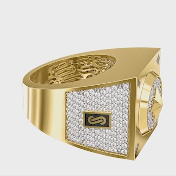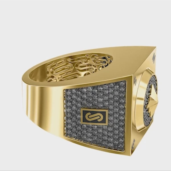 Adventurous in spirit, refined in style, the Monaco Chain NERO 3 gold men's ring features an intricate compass design, complete with rows of Swarovski cubic zirconia.